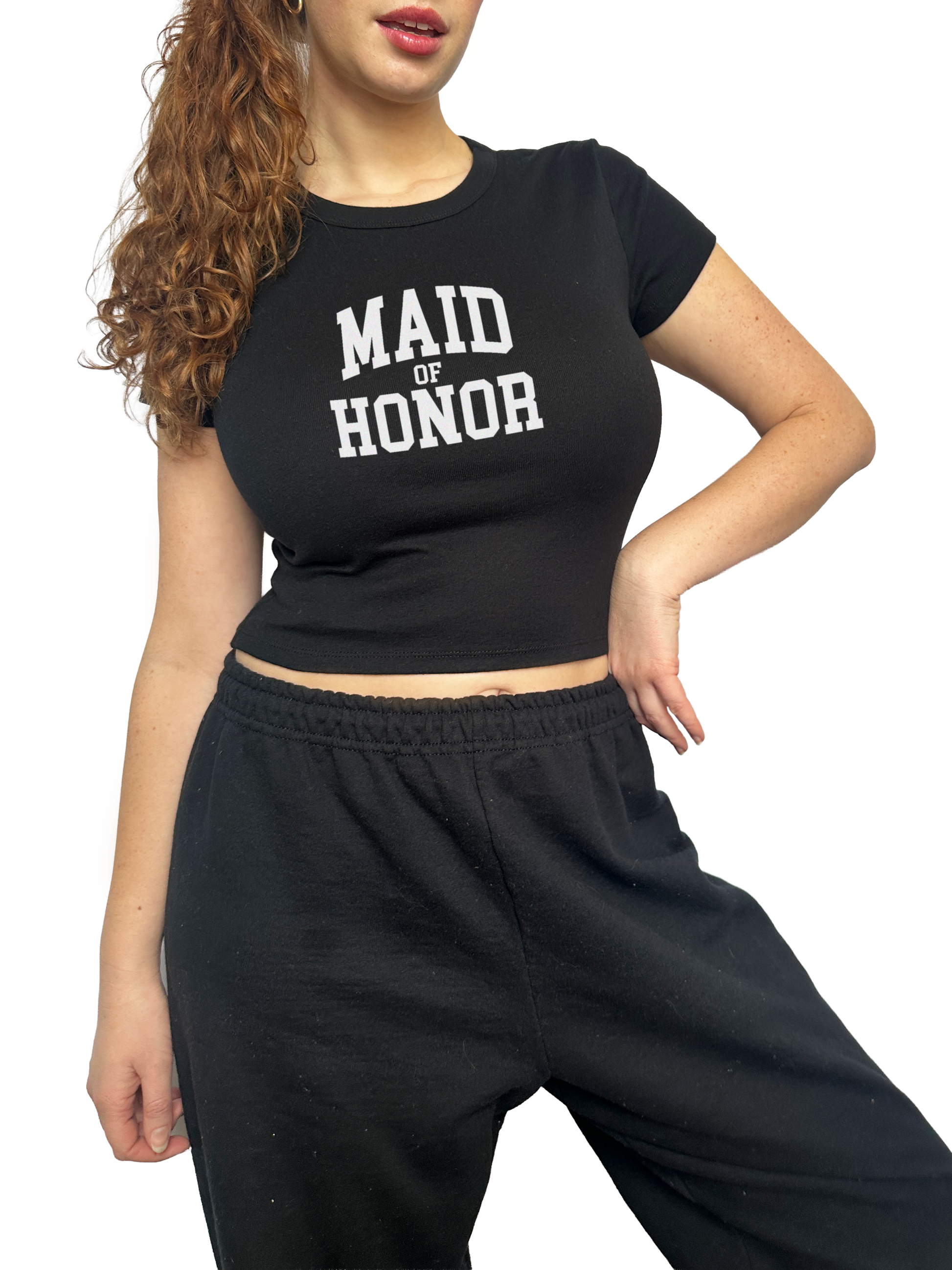 Varsity Maid of Honor Baby Tee - Black